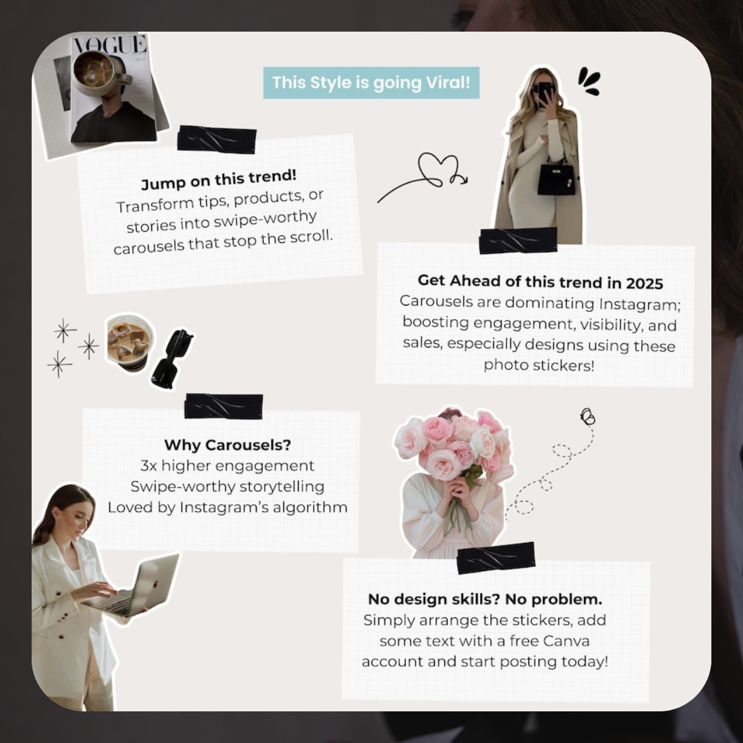Create scroll-stopping Instagram carousels in minutes with this 350+ Trendy Canva Sticker Bundle!