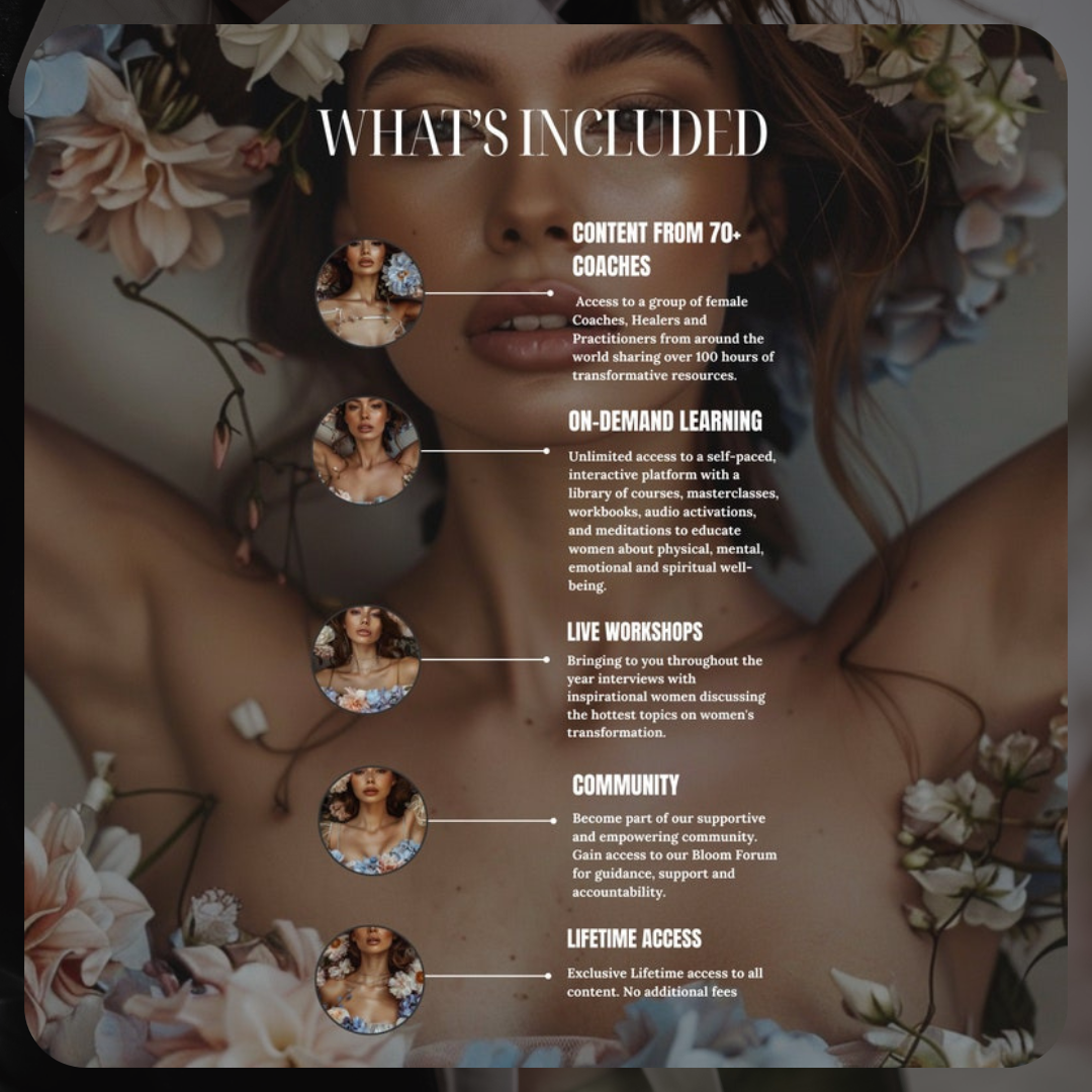 Our members share a space of encouragement, inspiration, and connection. Through the Bloom Forum and live workshops with inspiring speakers, you’ll always have a place to turn for support, insights, and shared experiences.