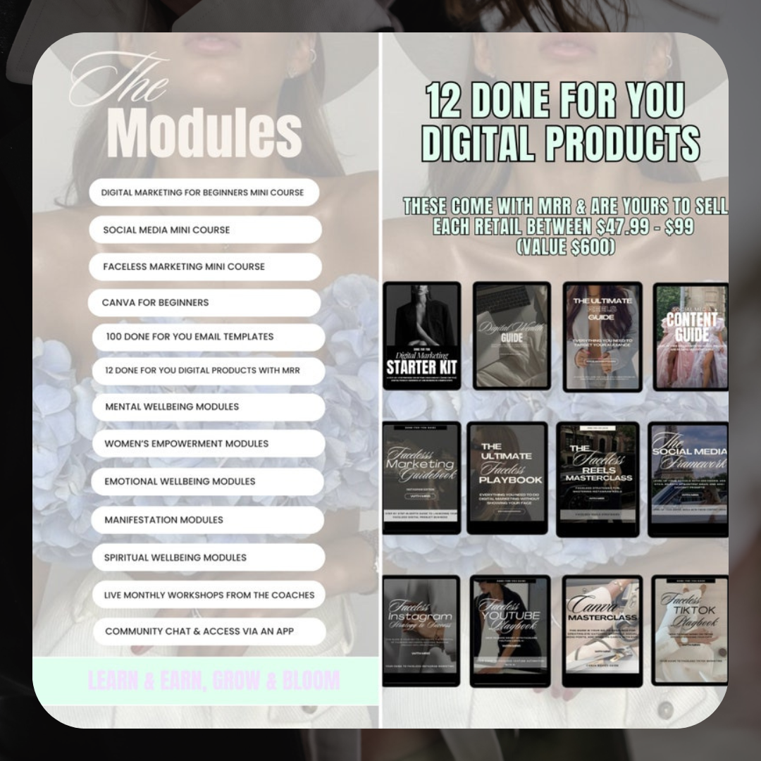 ✦ Incredible Value: Content worth $3,000+ plus 20+ Done For You Ebooks and templates.