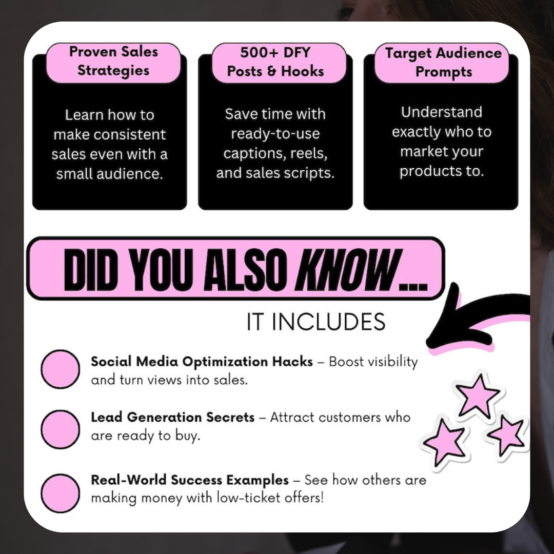 Secure your guide today and make low-ticket sales effortlessly with our done-for-you methods. Let's turn your aspirations into achievements!🏆