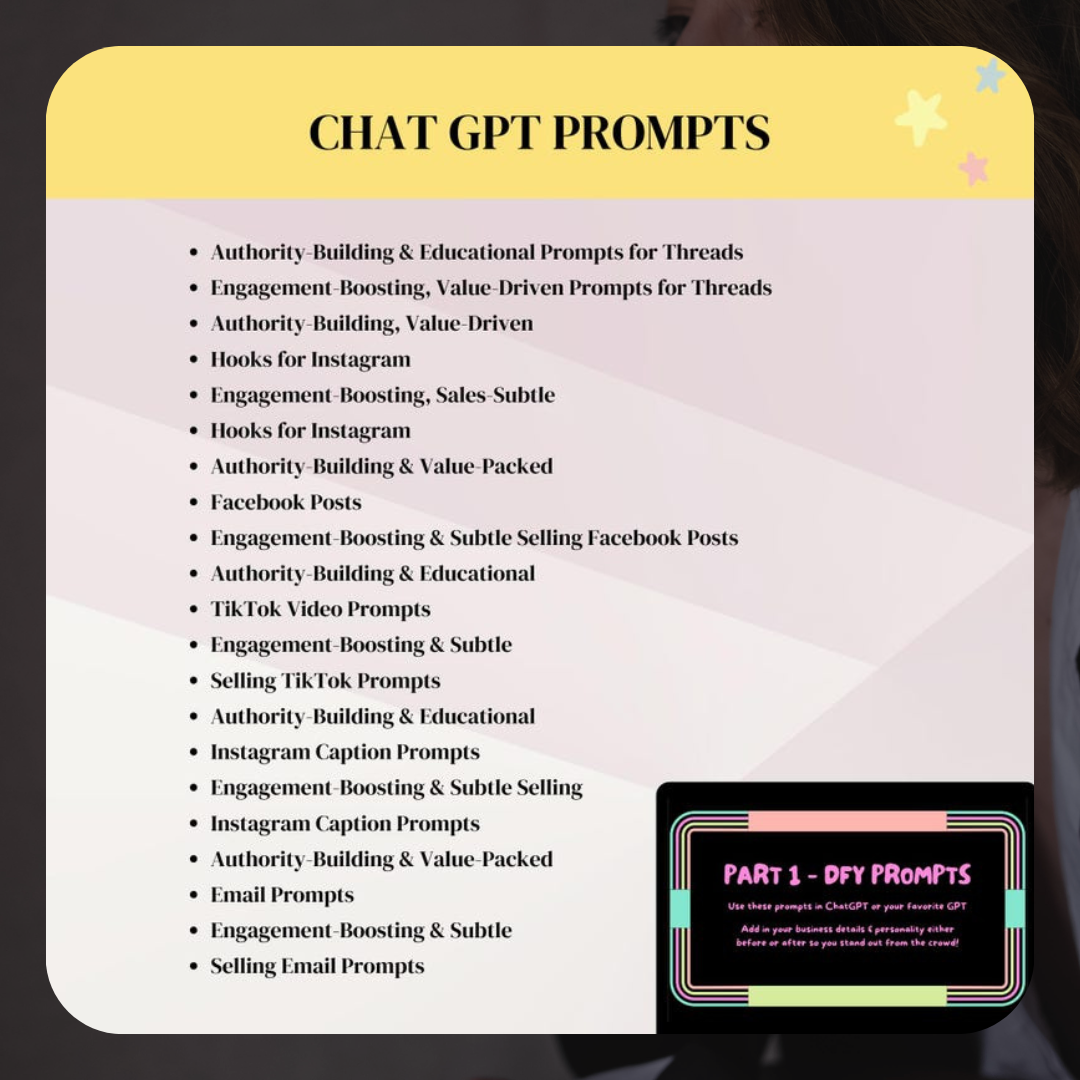 ✅ DFY ChatGPT Prompts – Copy, paste, and let AI generate high-converting content.